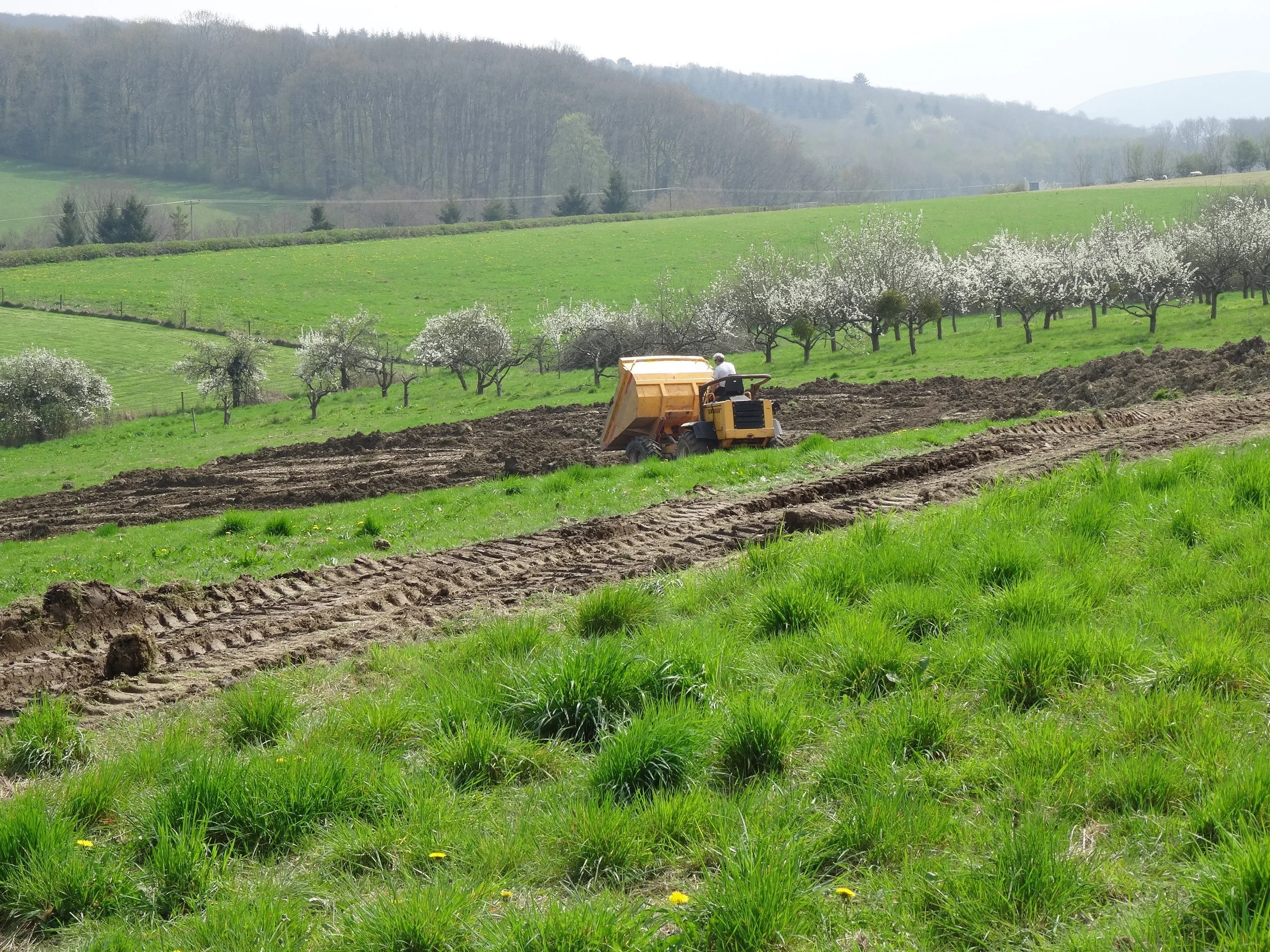Dumping subsoil in a dip in the field adjacent to the house: perhaps counterintuitively, wildflowers need poorer quality soil so this helped with our derise to develop a wildflower meadow