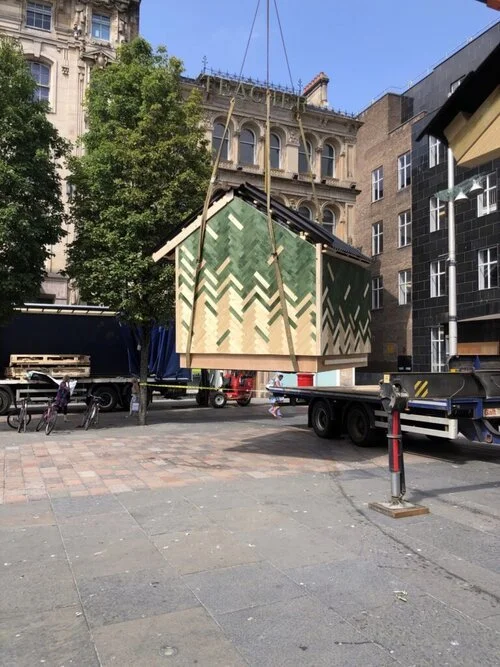 We were delighted to be approached by the International Passive House Association about the Ice Box Challenge in Glasgow in the lead-up to COP26. Held in various cities around the world, this event showcases two boxes, one built to local building standards and the other to the Passivhaus standard, each filled with an identical amount of ice. After two weeks they are opened to see which has the more ice inside. The prize this time for guessing how much is a two-day stay at the Woodlands Malvern oak-frame certified Passivhaus.
